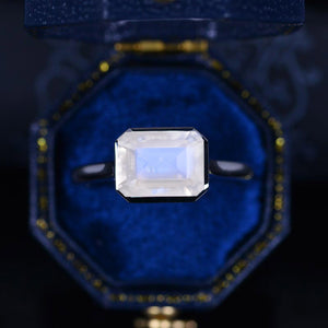 3Ct Genuine Moonstone Engagement Ring, Bezel Set Emerald Cut Genuine Moonstone Engagement Ring, Genuine Moonstone Classic Engagement Ring