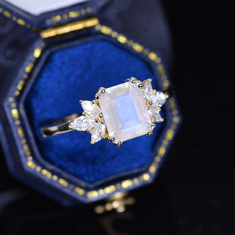 3Ct Genuine Moonstone Engagement Ring, Solitaire Emerald Cut Genuine M - Giliarto