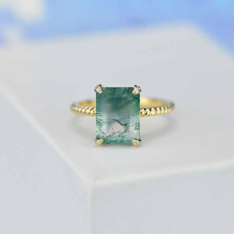 3Ct Genuine Moss Agate Engagement Ring, Radiant Cut moss agate Yellow - Giliarto