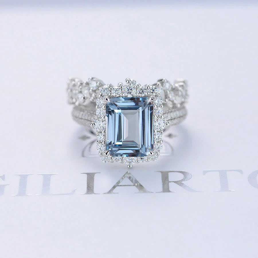 3 Carat Emerald Cut Genuine Natural Aquamarine AAA+ Quality Ā Center Stone Engagement ring set.