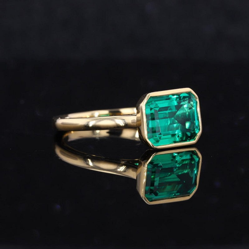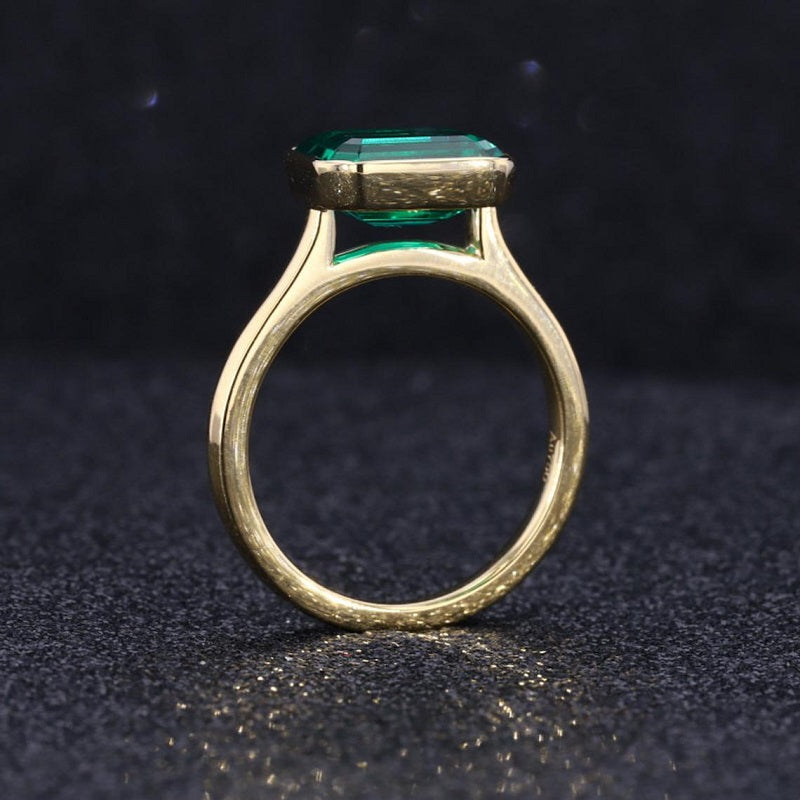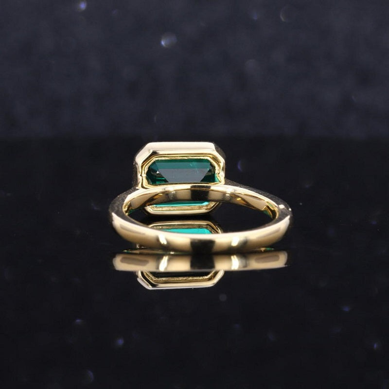 The default design option features  9x7mm Emerald Cut Moissanite Stone,Â