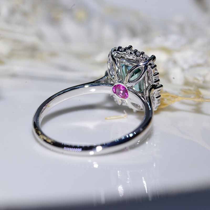 3Ct Green Moissanite Engagement Ring, Emerald Cut Halo Moissanite Engagement Ring