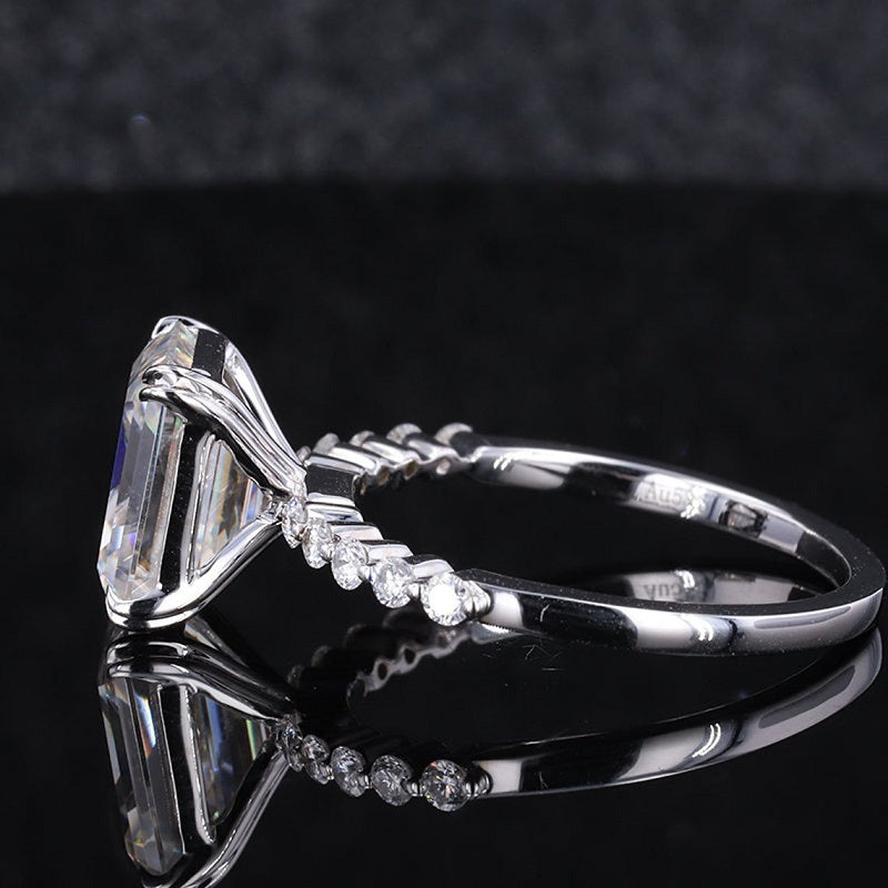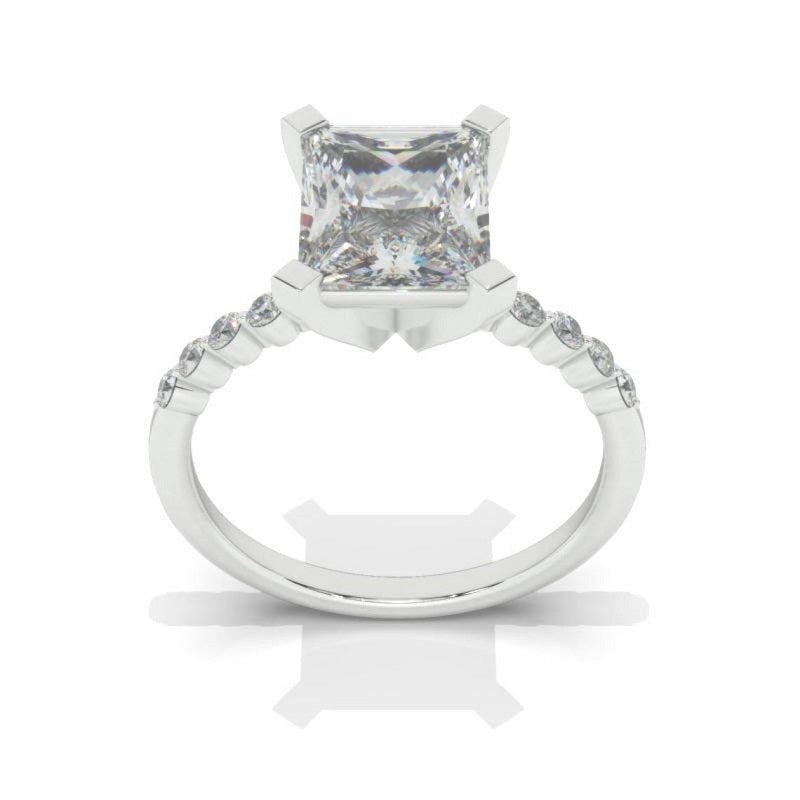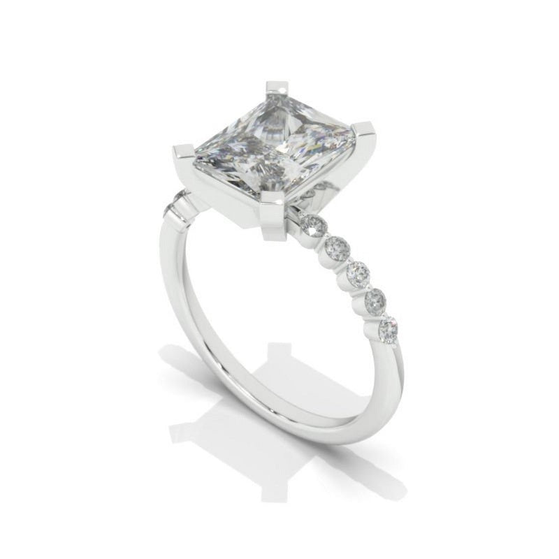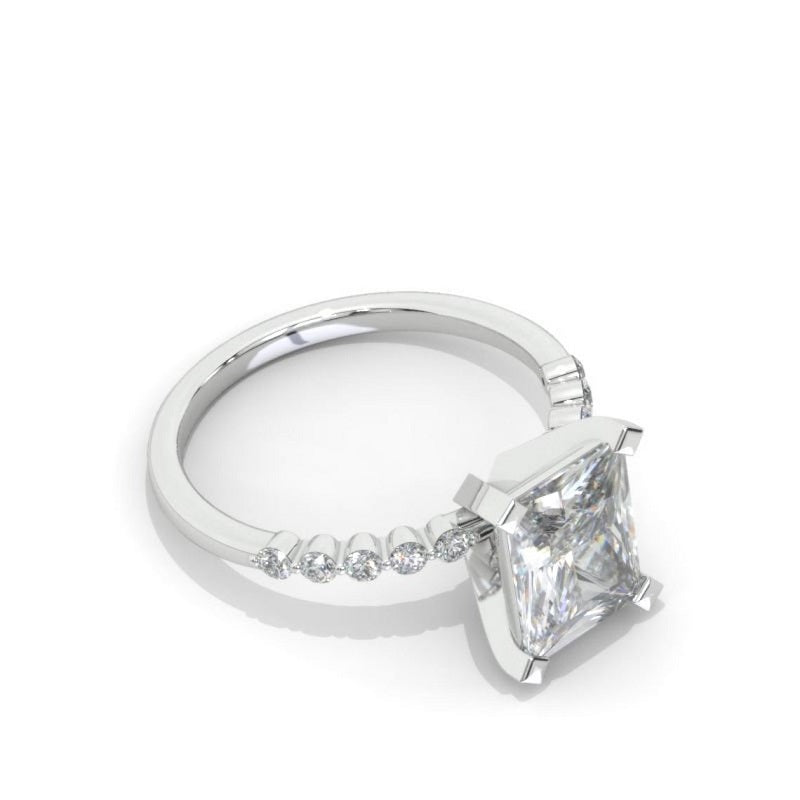 The default design option features 9x7mm Radiant Cut LAB-Grown Diamond Center Stone, D-Colorless, VVS1-Clarity, VG-Cut, Ex-Polish, VG-Symmetry with LAB-Grown Diamond Accent Stones set