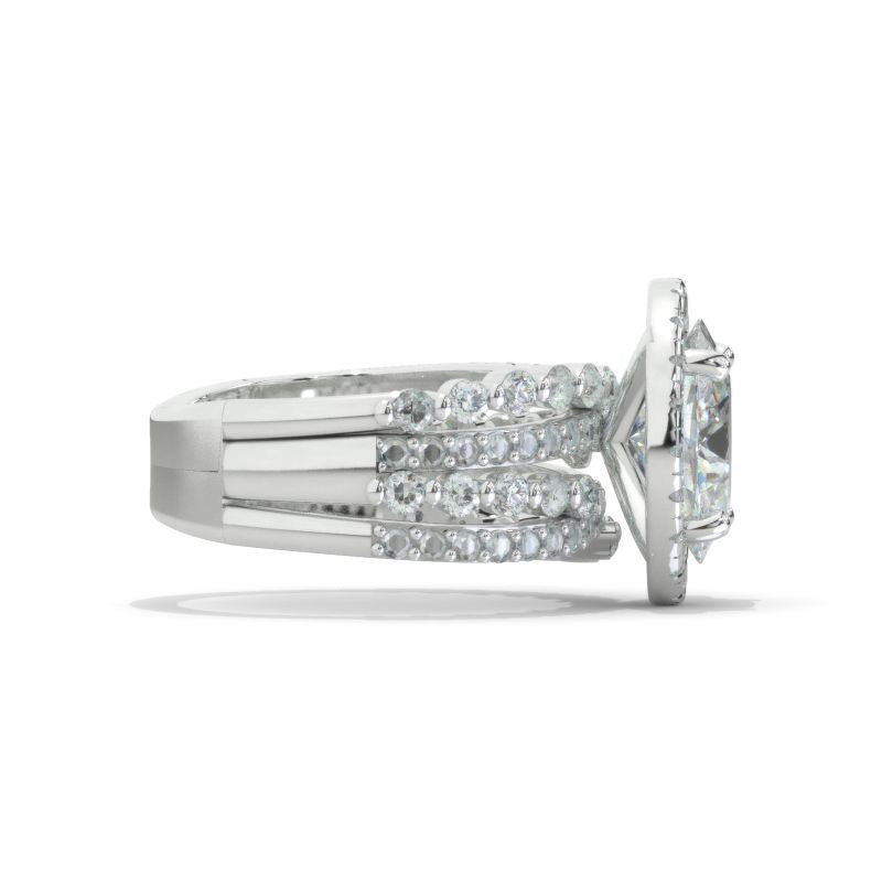 The default design option features 10x8mm Oval Cut LAB-Grown Diamond stones, D-Colorless, VVS1-Clarity, VG-Cut, Ex-Polish, VG-Symmetry