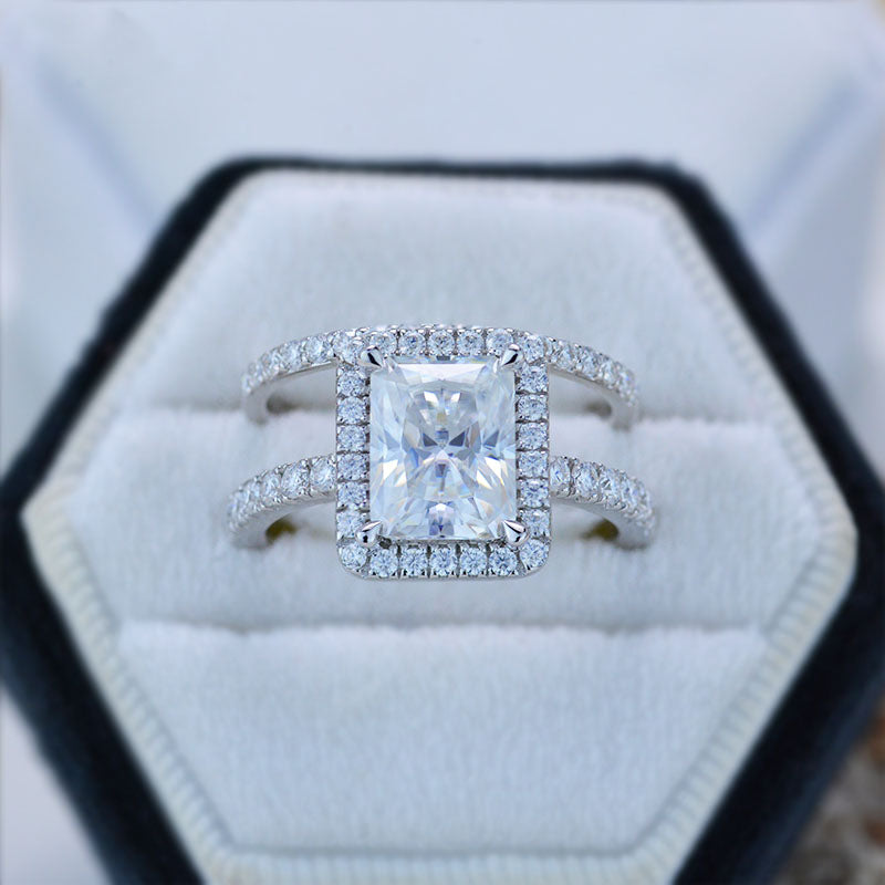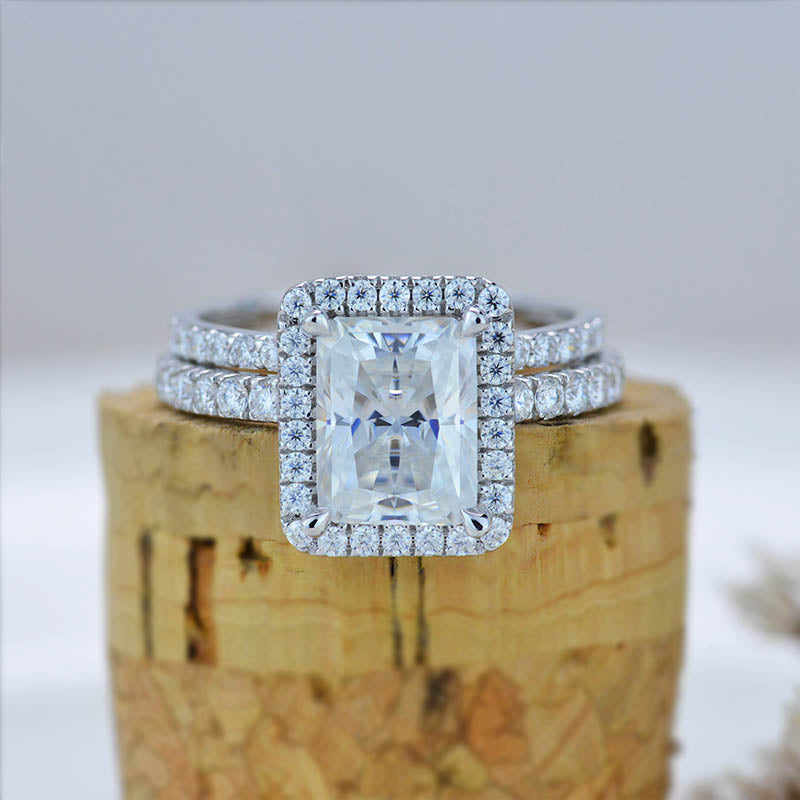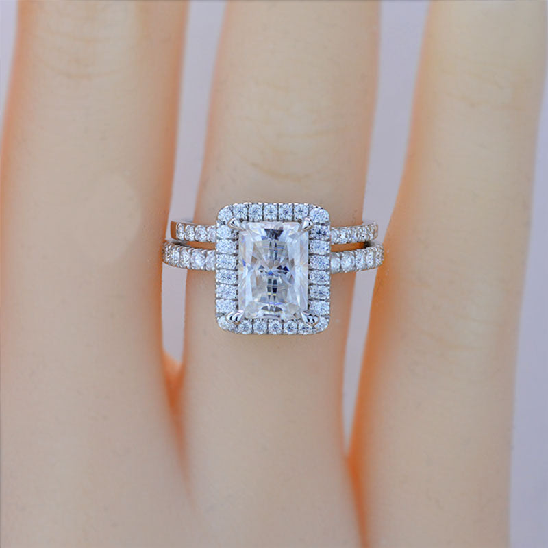 3 Carat Radiant Cut Center Stone Engagement ring set.