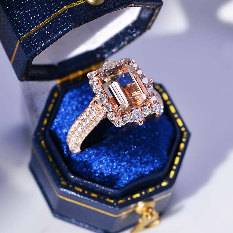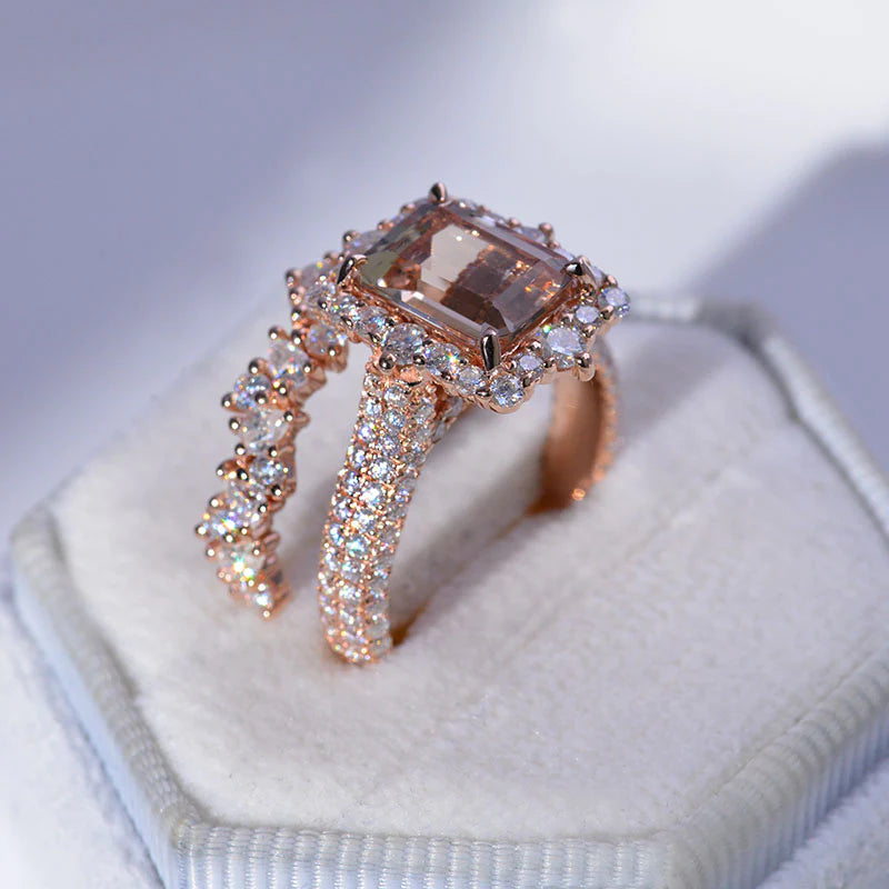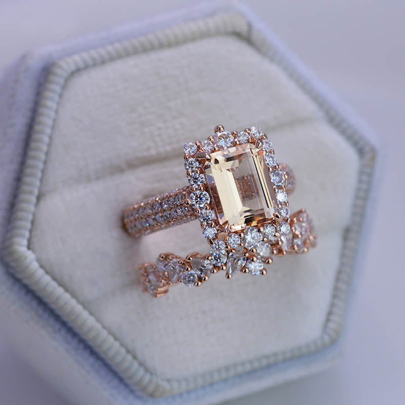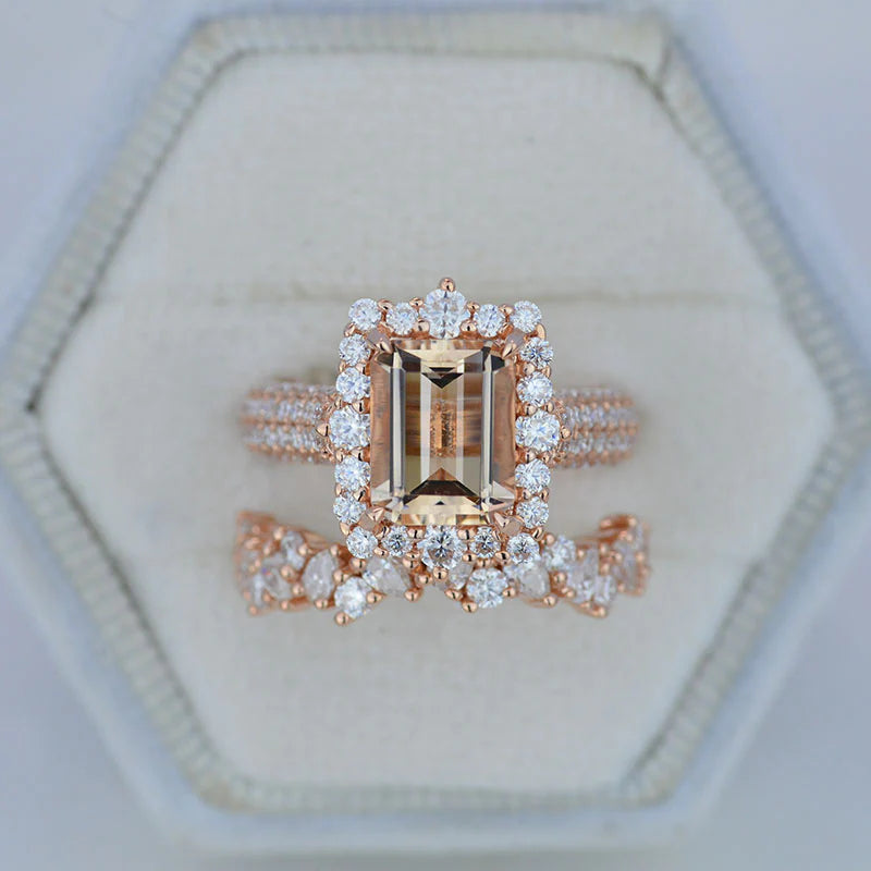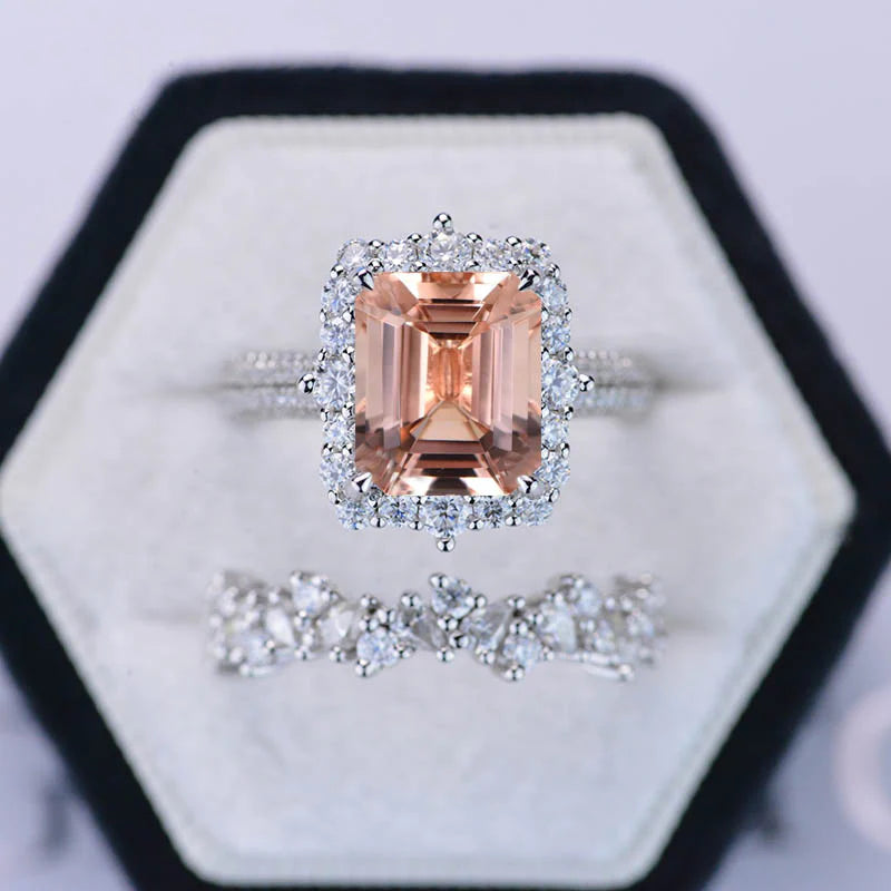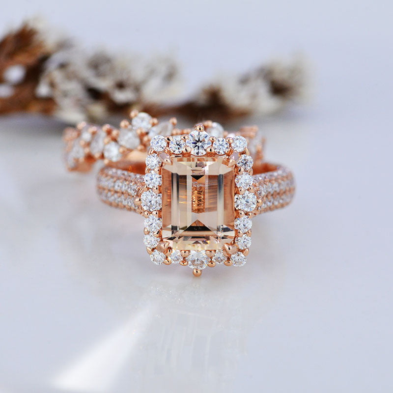 3Ā Carat Emerald Cut Natural MorganiteĀ Center Stone Engagement ring set.