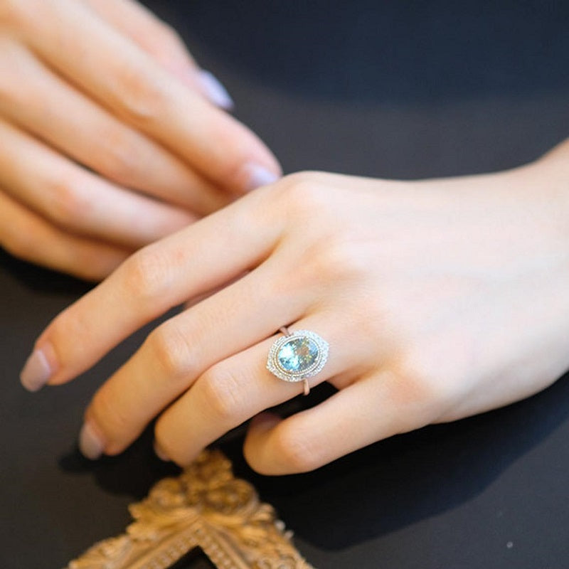3Ct Oval cut Aquamarine ring, Aquamarine solitaire ring, natural aquamarine ring, genuine aquamarine Oval Shape vintage halo ring