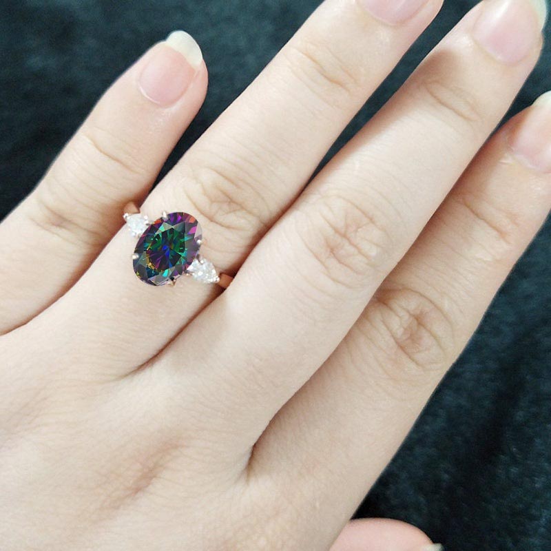 3CT Oval Genuine Naturae Mystic Topaz Wedding Ring. Three Stone Mystic - Giliarto