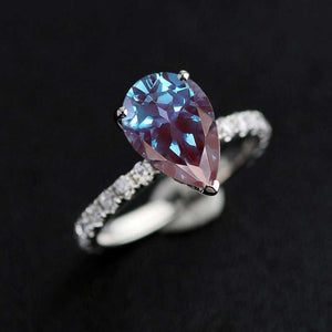 The default design option features 11x7mm Pear Cut Ethically Lab-Grown Alexandrite Stone