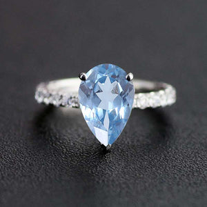 The default design option features 11x7mm Pear Cut Genuine Natural Aquamarine Stone