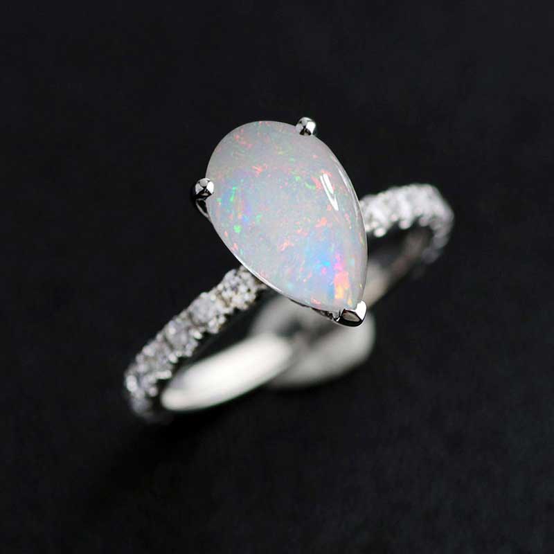 The default design option features 11x7mm Pear Cut Genuine White Opal Stone