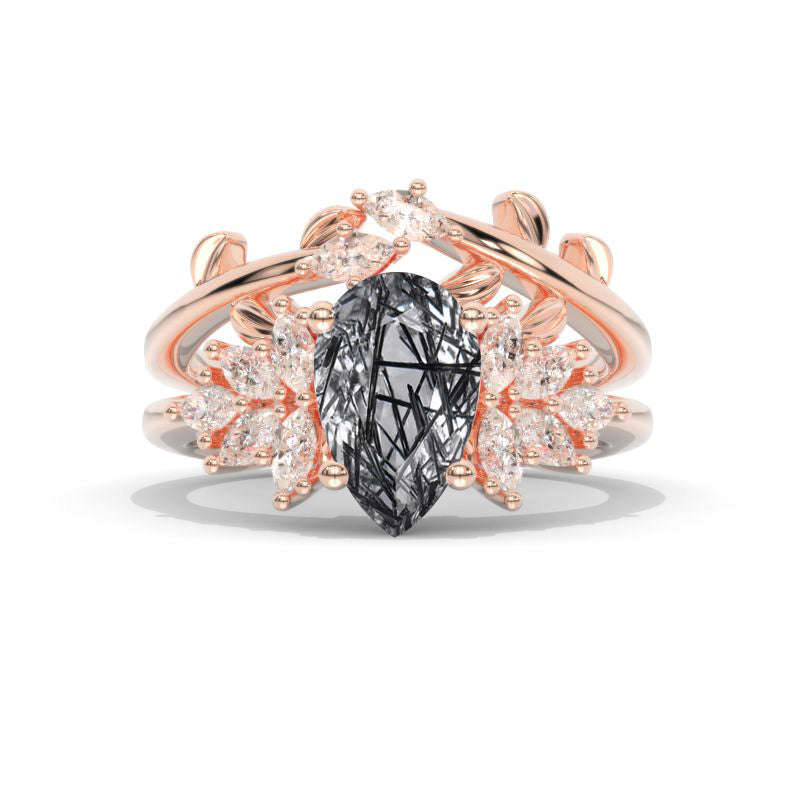 3CT Pear Shape Natural Rutilated Quartz Engagement Ring Set, 3 Carat P - Giliarto