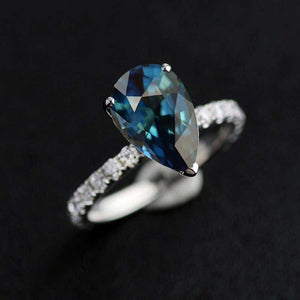 3Ct Pear Teal Sapphire Hidden Halo Engagement Gold Ring, 11x7mm Pear C - Giliarto