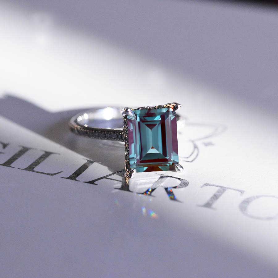 4 Carat Emerald Cut Alexandrite Stone Gold Ring - Giliarto