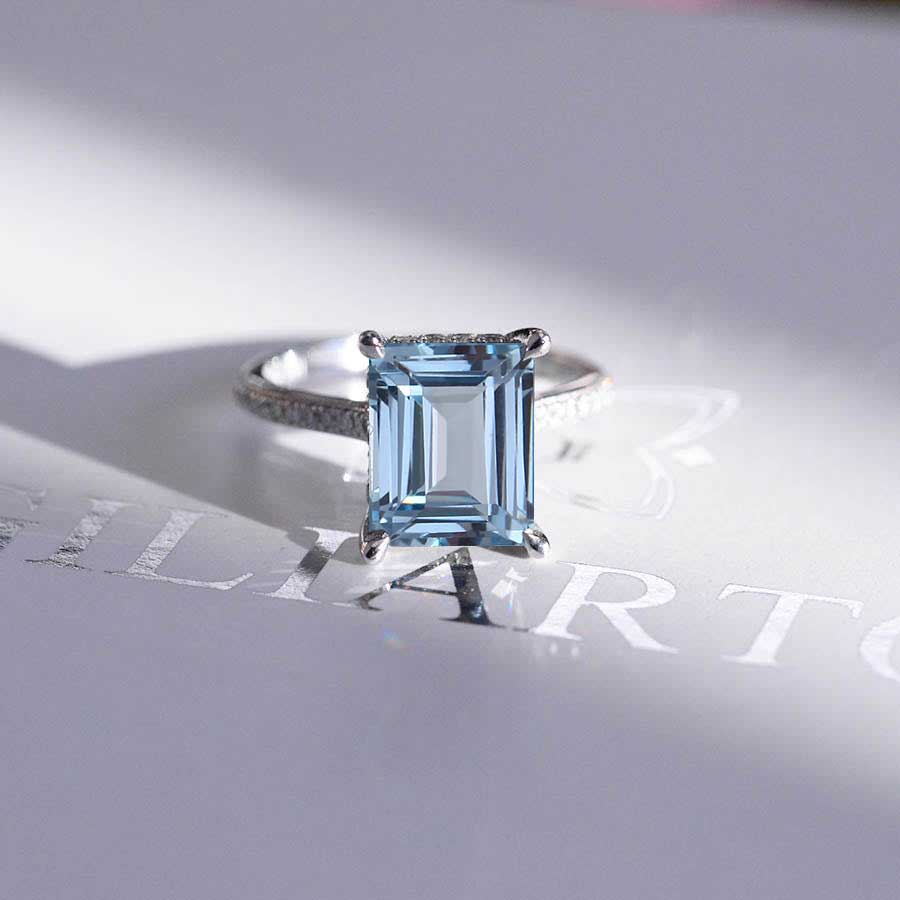 4 Carat Emerald Cut Genuine Natural Aquamarine Stone Gold Ring - Giliarto