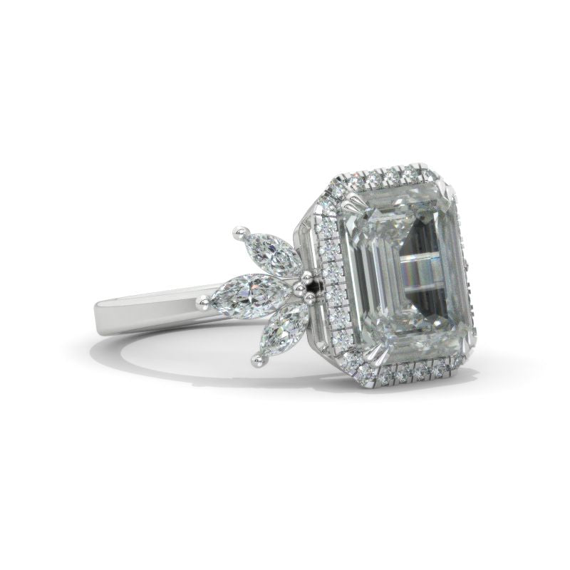 4 Carat Emerald Cut halo Cluster Giliarto Moissanite White Gold Engagement Ring Model 1210-10x8