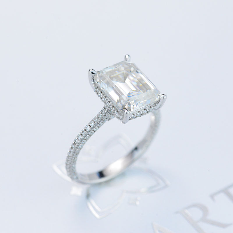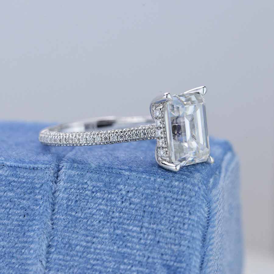 3 Carat Emerald Cut Lab-Grown Diamond Hidden Halo Engagement Ring