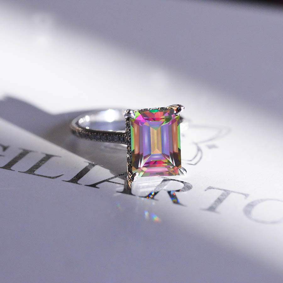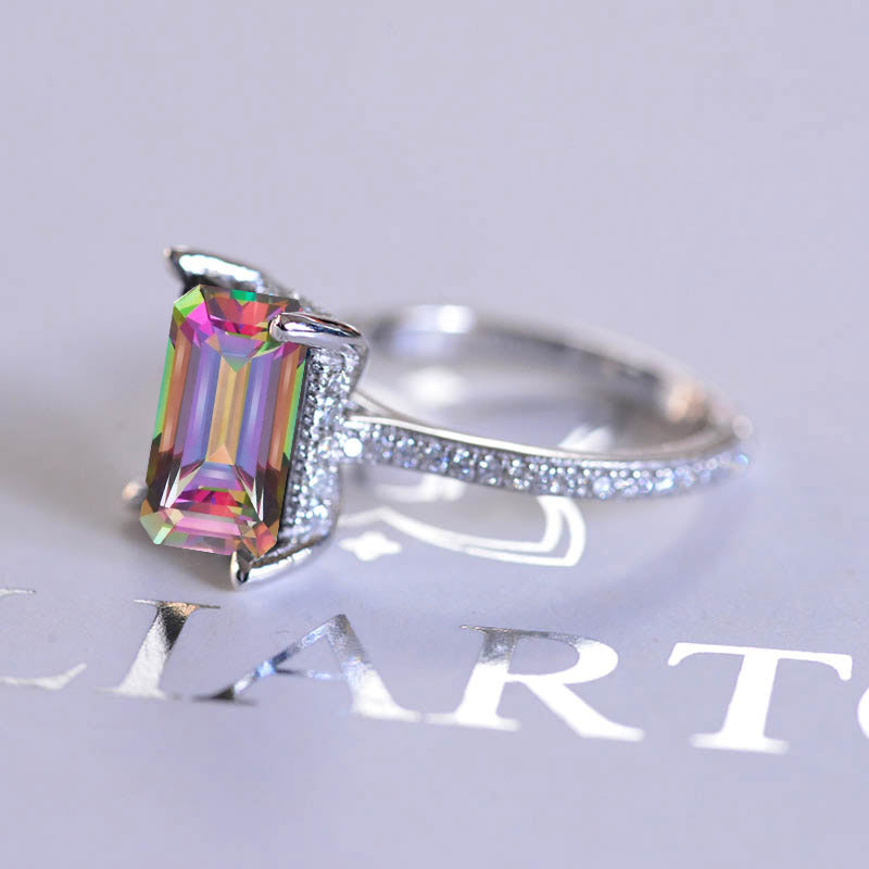 4 Carat Emerald Cut Mystic Topaz Stone Gold Ring - Giliarto