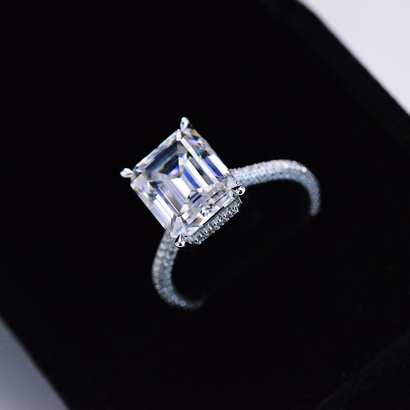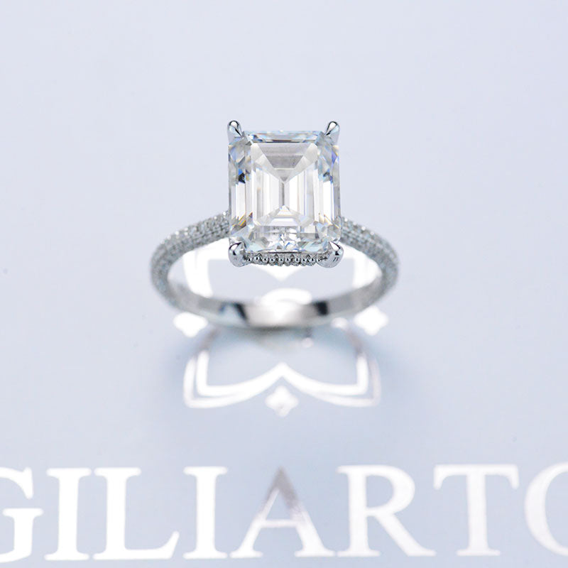 4 Carat Giliarto Emerald Cut Moissanite Hidden Halo Engagement Ring