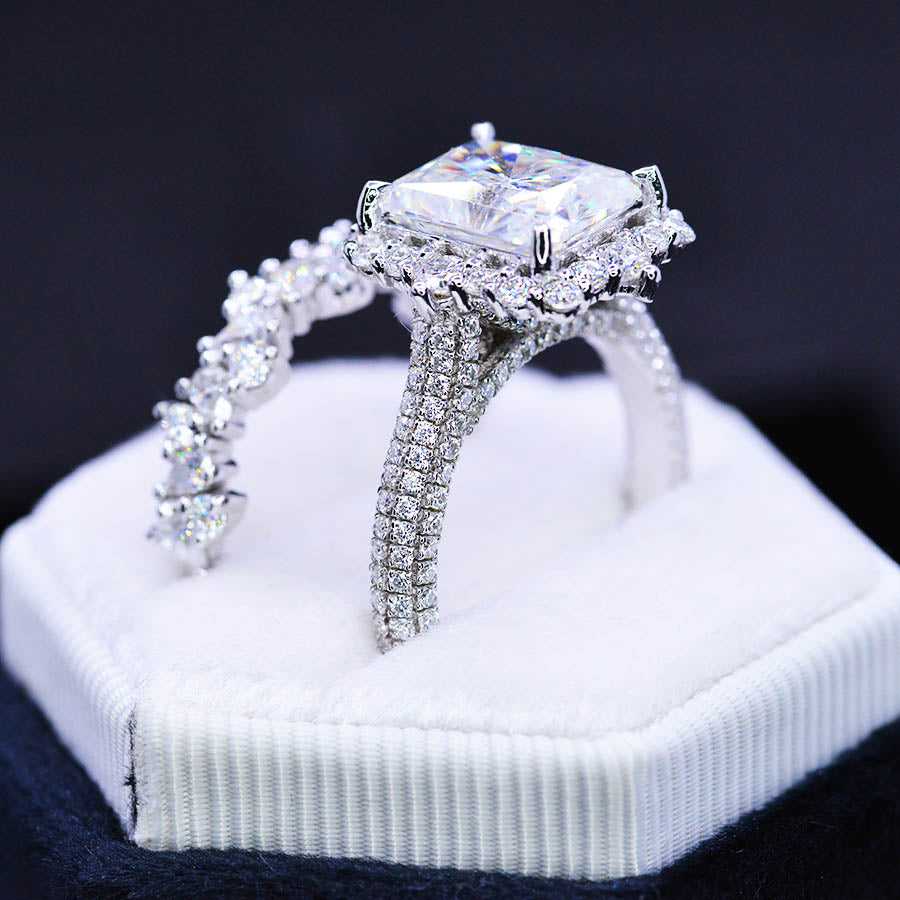 4Ā Carat Emerald Cut Center Stone Engagement ring set.