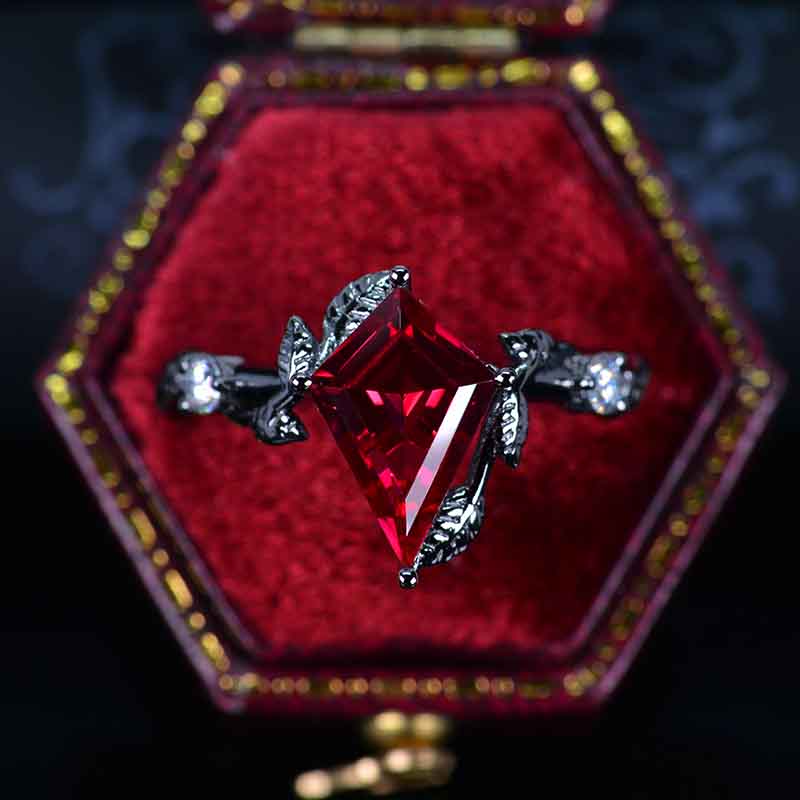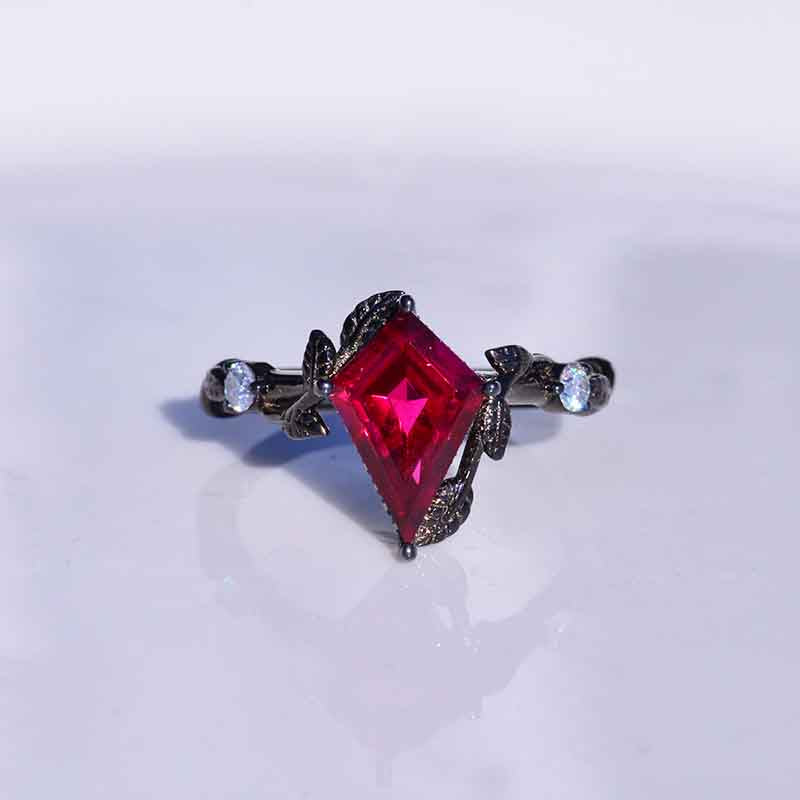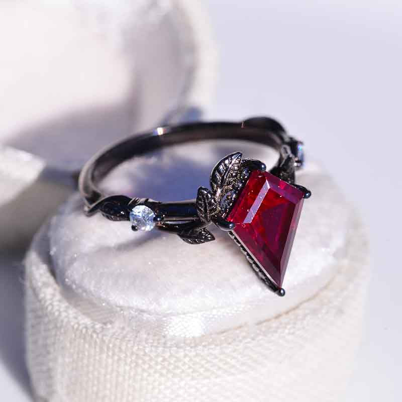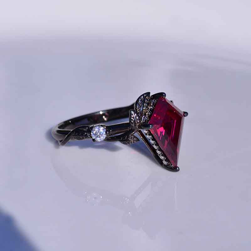 4 Carat Kite Ruby Twig Floral Leaf 14K Black Gold Engagement Ring - Giliarto
