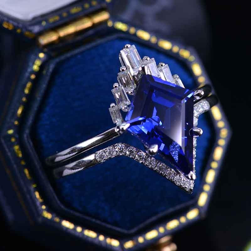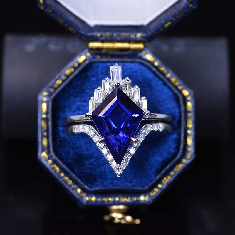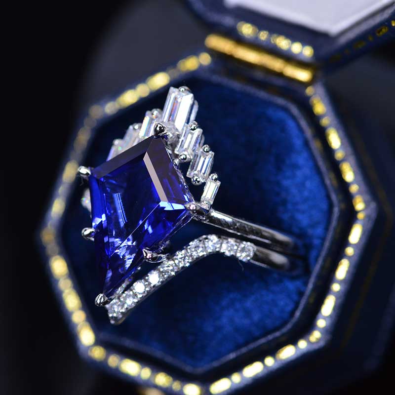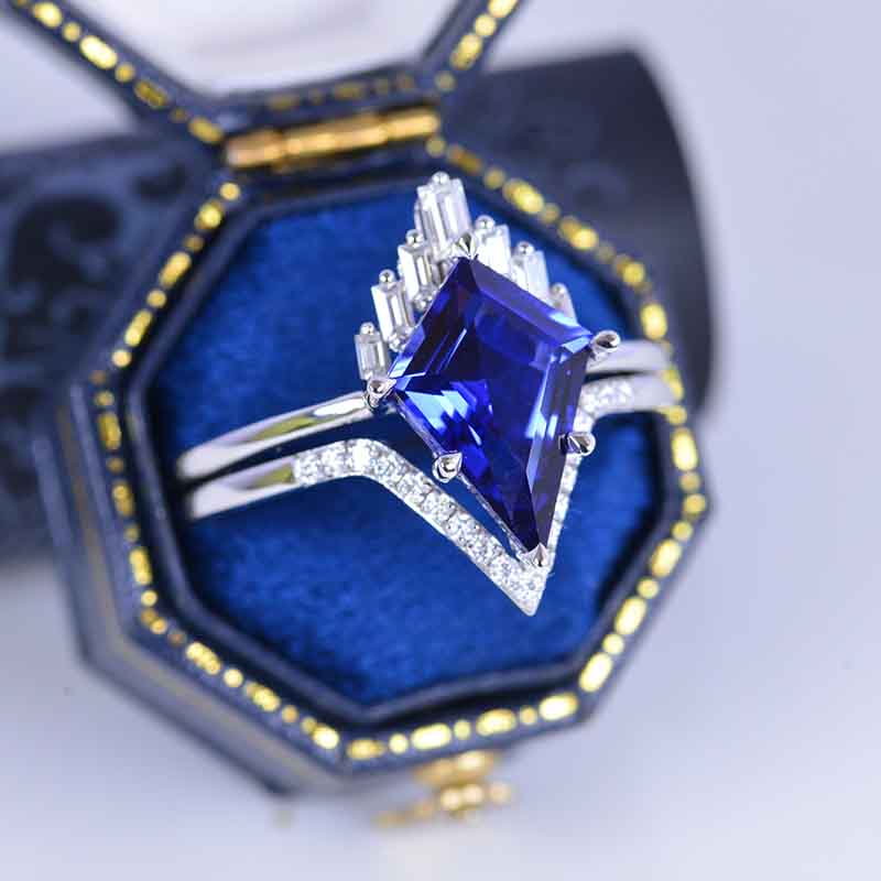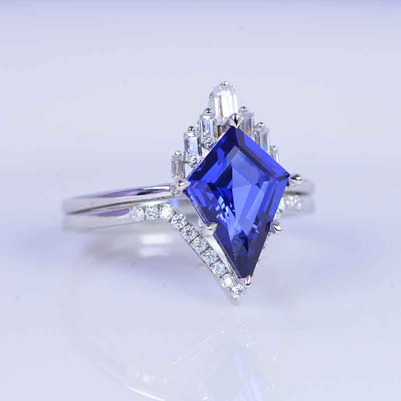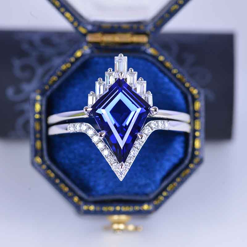 4 Carat Kite Sapphire Halo Engagement Ring, Eternity Ring Set - Giliarto