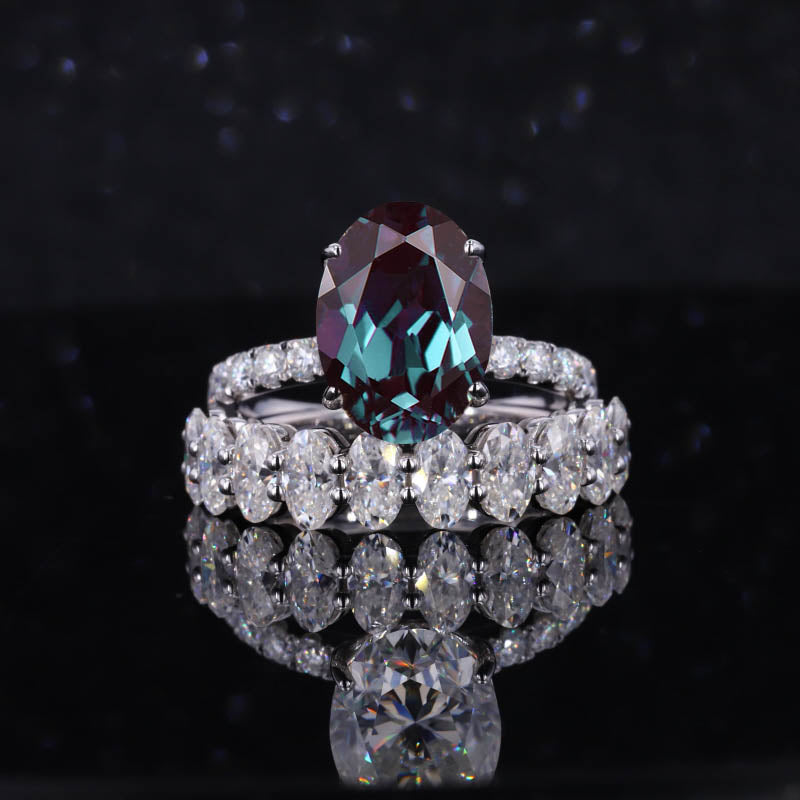 4 Carat Oval Cut Alexandrite White Gold Engagement Ring Set - Giliarto