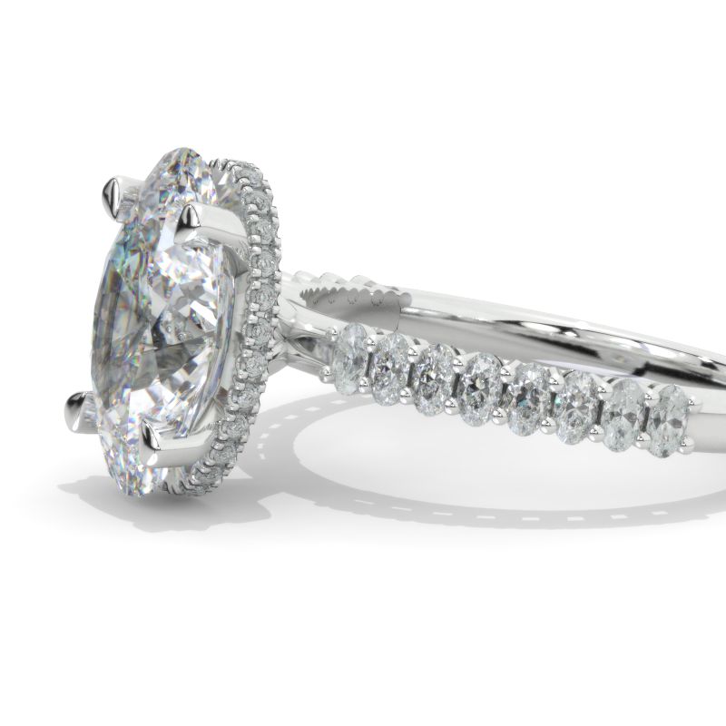 4 Carat Oval Cut LAB-Grown Diamond Hidden Halo White Gold Engagement Ring Model 739-11x7