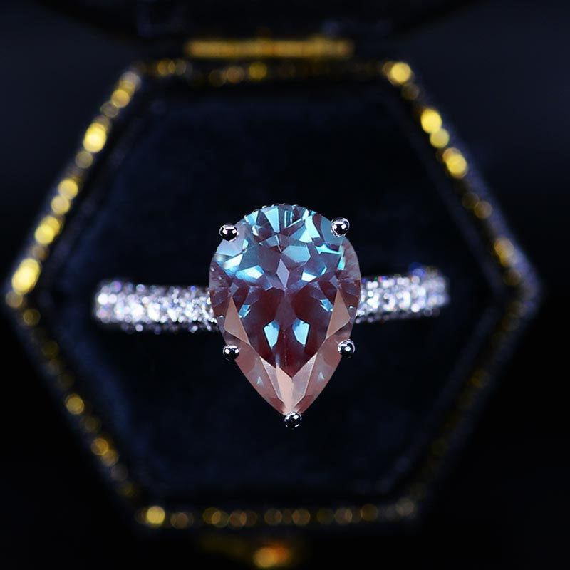 4 Carat Pear Cut Alexandrite Hidden Halo Engagement Ring