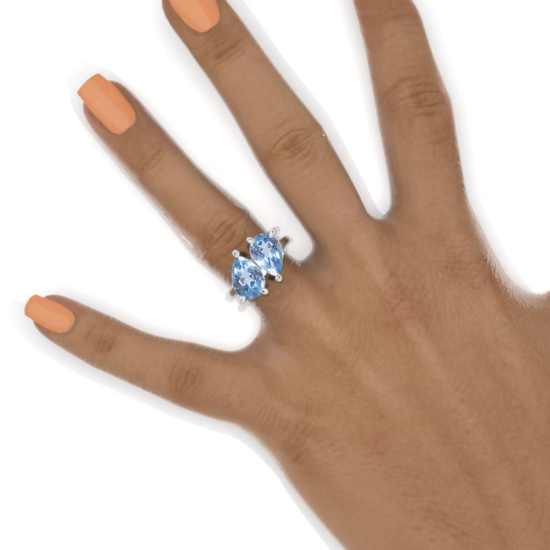 4 CTW Genuine Natural Aquamarine Double Pear Cut Engagement 14K White - Giliarto