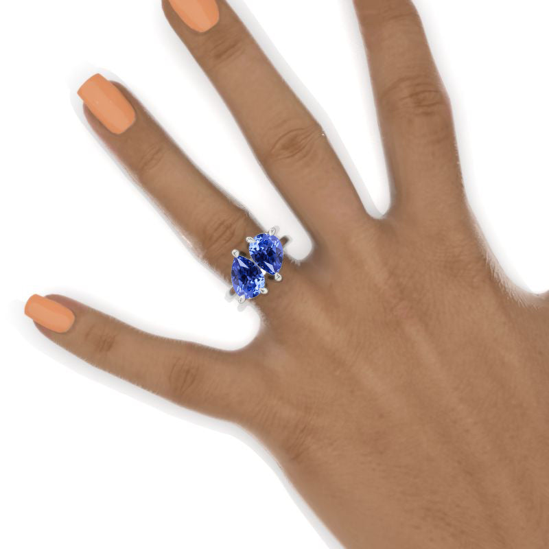 4 CTW Natural Genuine Tanzanite Double Pear Cut Engagement 14K White G - Giliarto