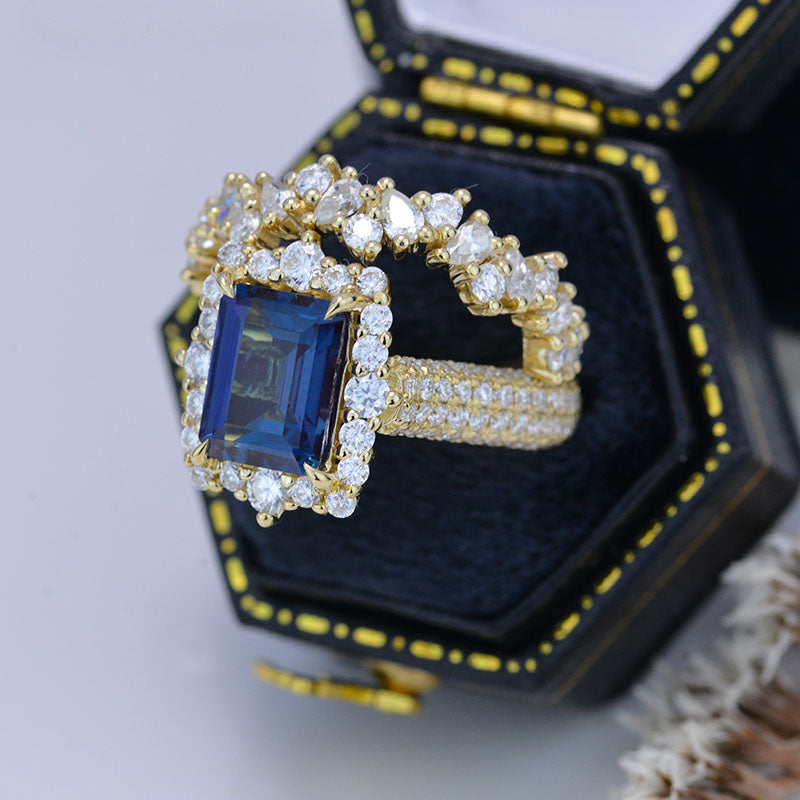 4 Carat Emerald Cut Ethically Lab-Grown Alexandrite Center Stone Engagement ring.