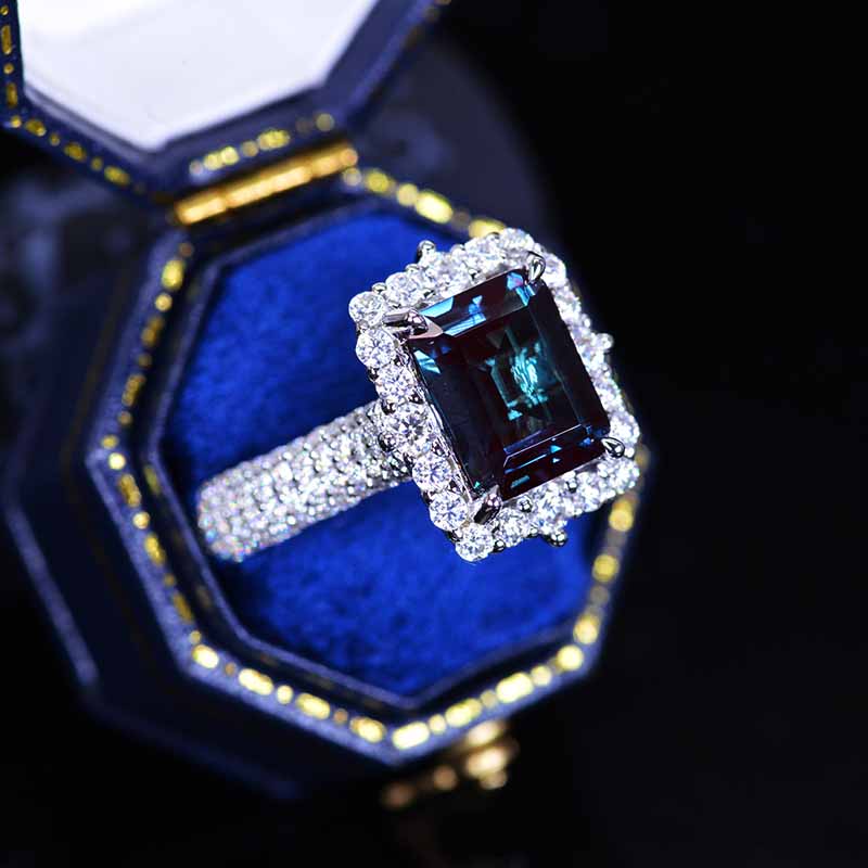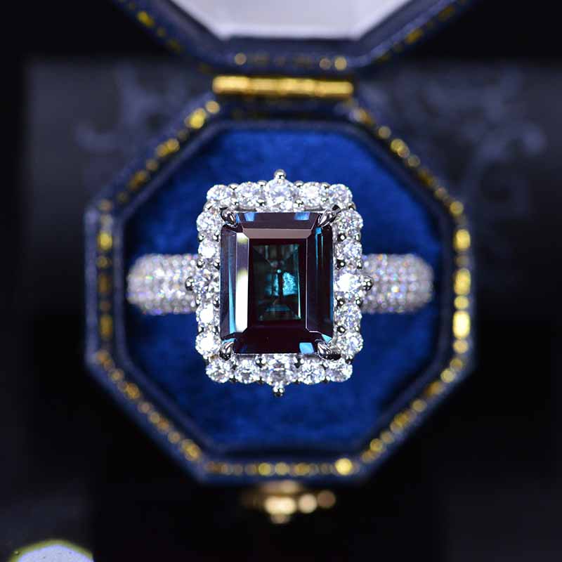 4Ct Alexandrite Engagement Ring Halo Emerald Cut Alexandrite Engagement Ring