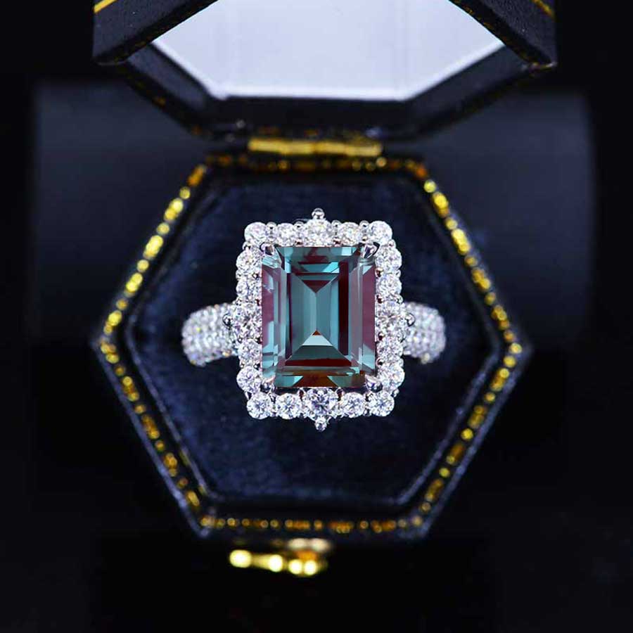 4Ct Alexandrite Engagement Ring Halo Emerald Cut Alexandrite Engagemen - Giliarto