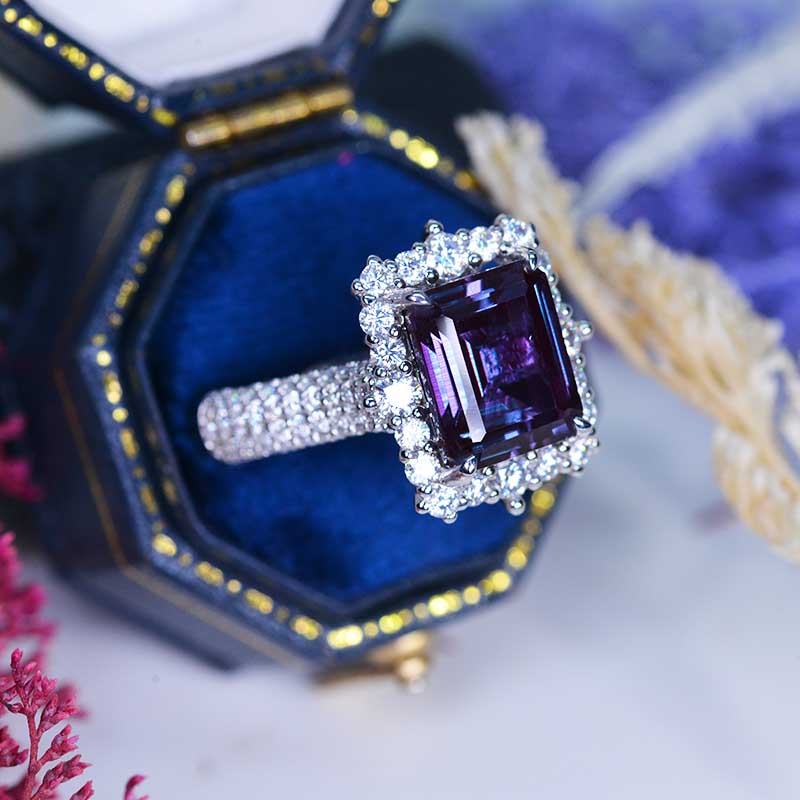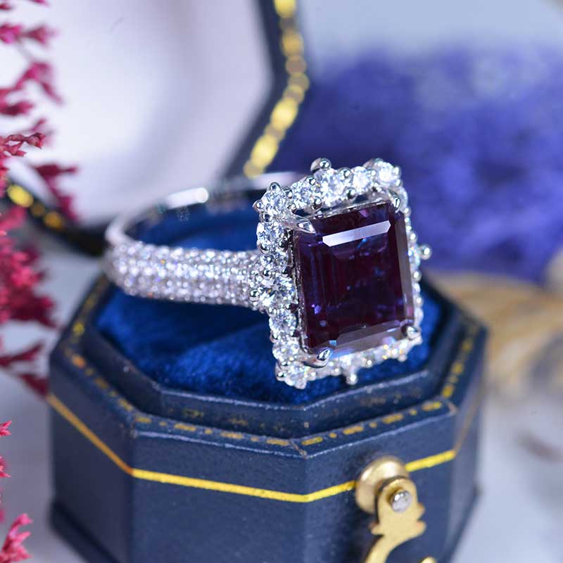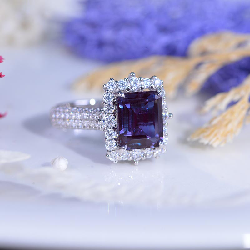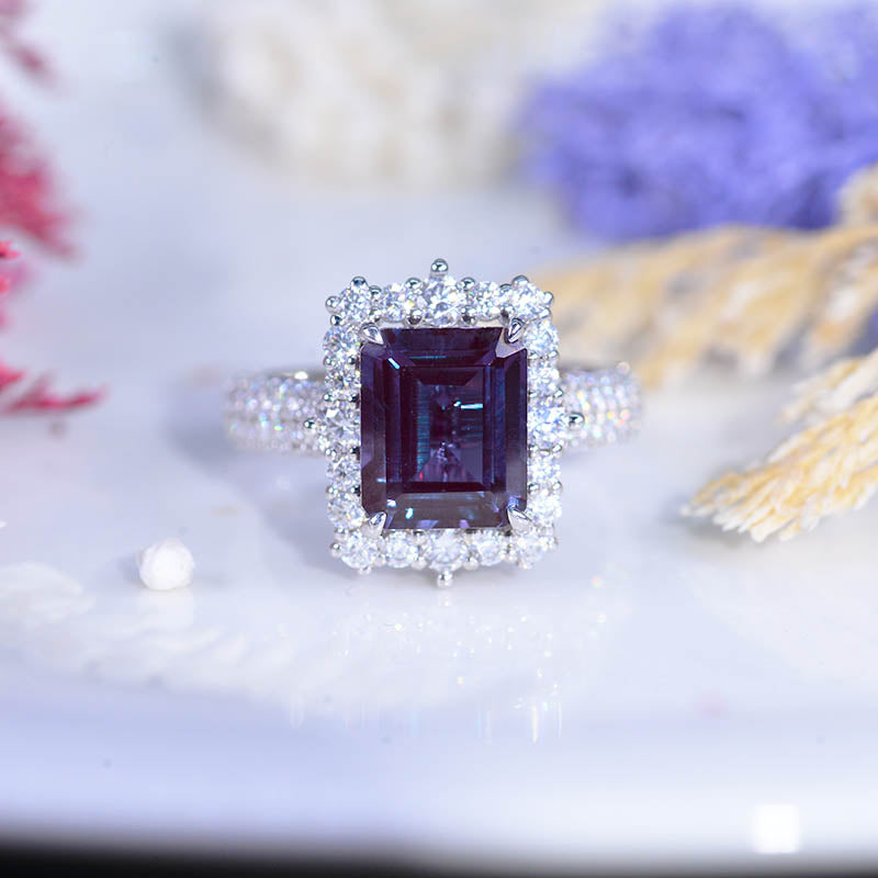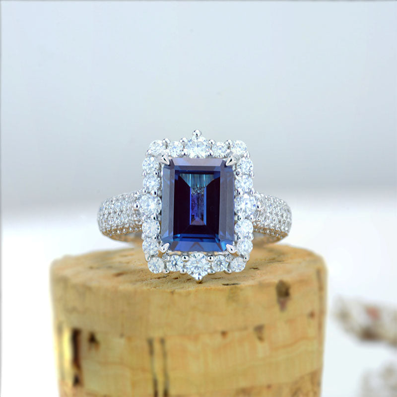 4Ct Alexandrite Engagement Ring Halo Emerald Step Cut Alexandrite Engagement Ring
