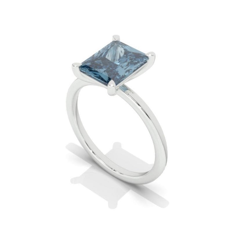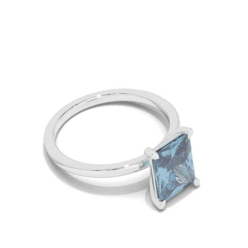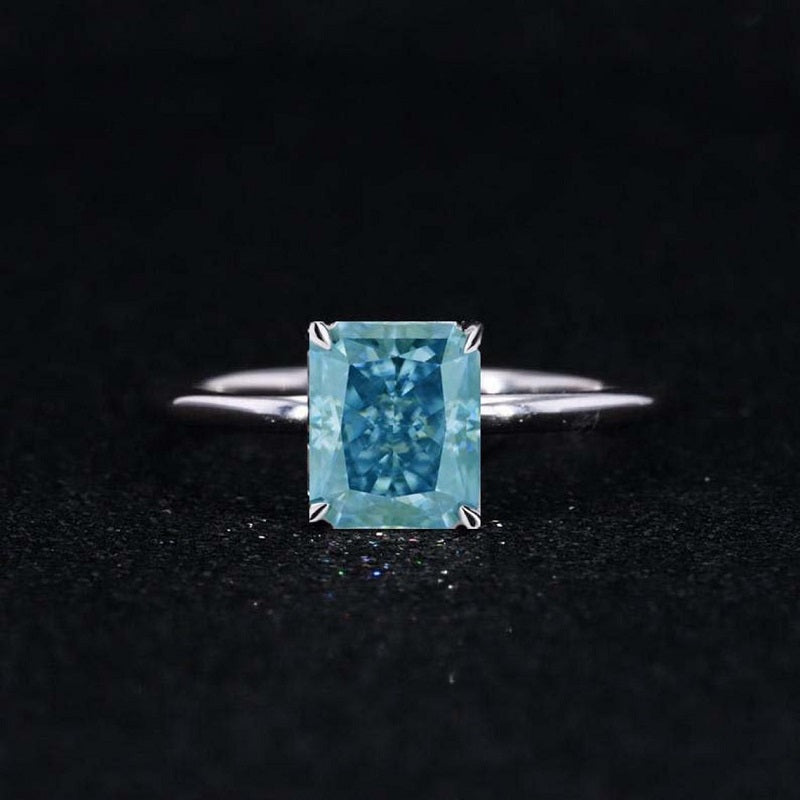 4Ct Blue Moissanite Engagement Ring, Solitaire Radiant Cut Moissanite - Giliarto