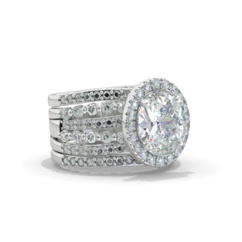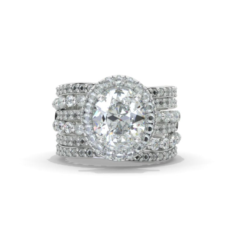 The default design option features 11x9mm Oval Cut LAB-Grown Diamond stones, D-Colorless, VVS1-Clarity, VG-Cut, Ex-Polish, VG-Symmetry