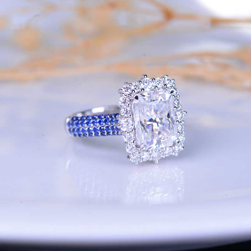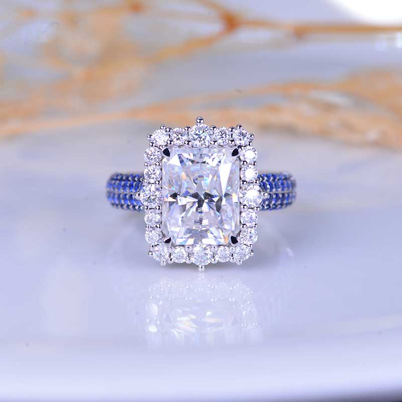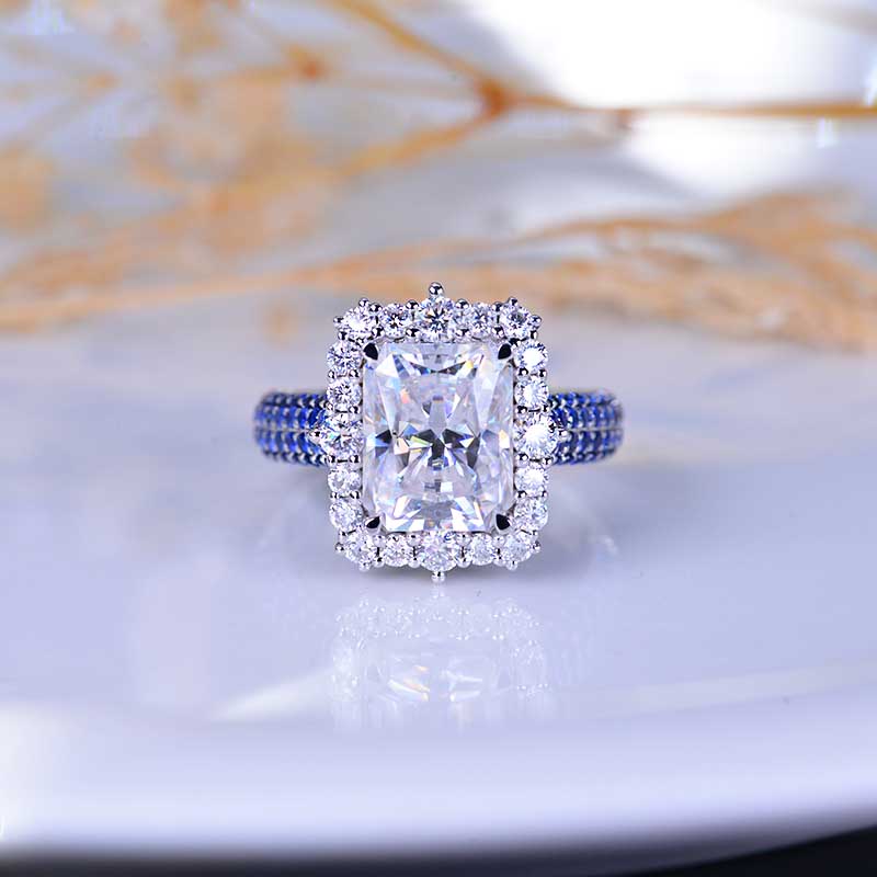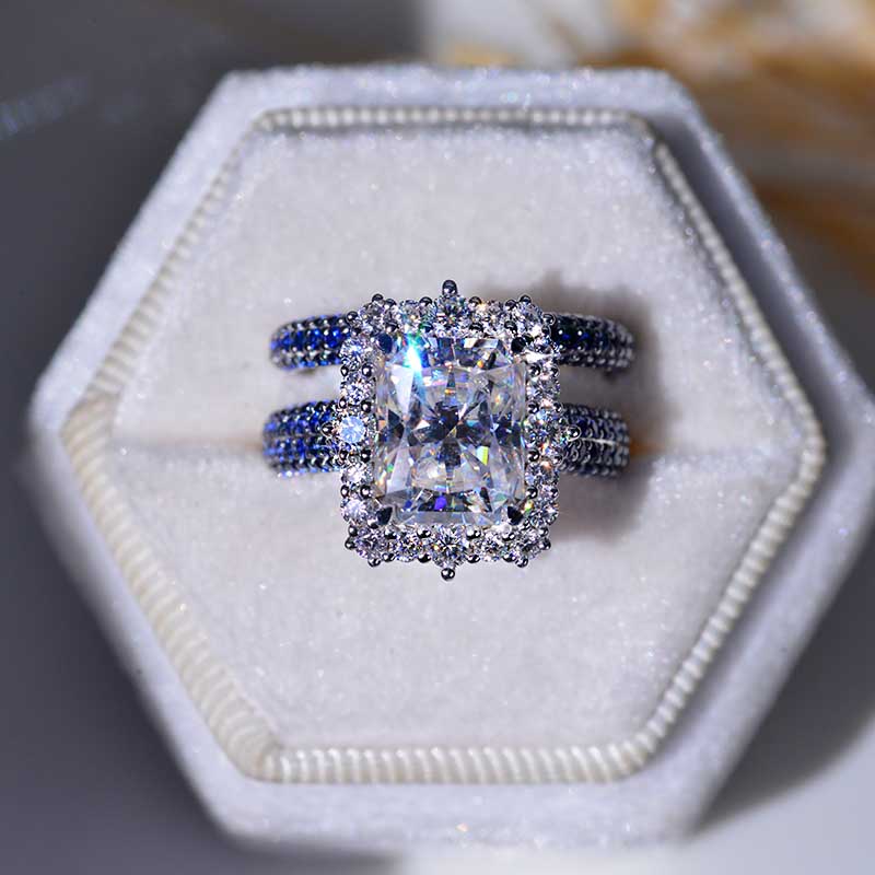 4 Carat Radiant Cut Center Stone Engagement Ring Set.