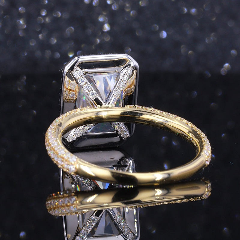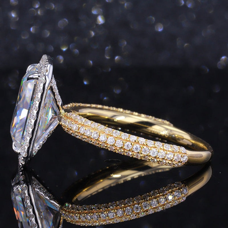 4Ct Moissanite Engagement Ring Halo Radiant Cut Moissanite Engagement Ring, 10x8mm Radiant Cut Moissanite Engagement Two Tone Ring