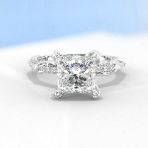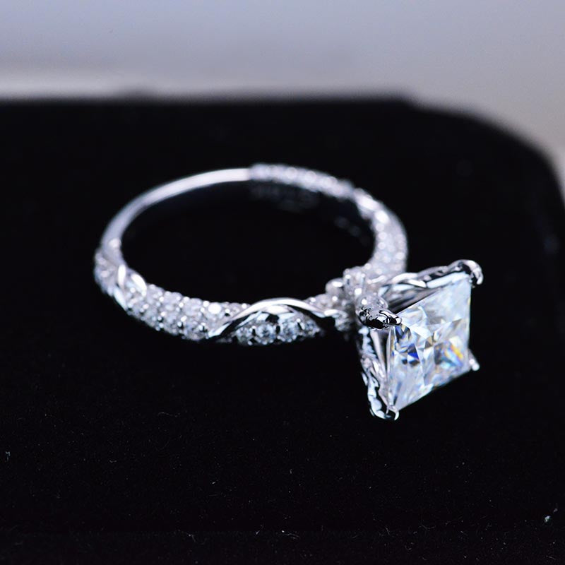 The default design option features 9x9mm Princess Cut MoissaniteĀ Stone,Ā