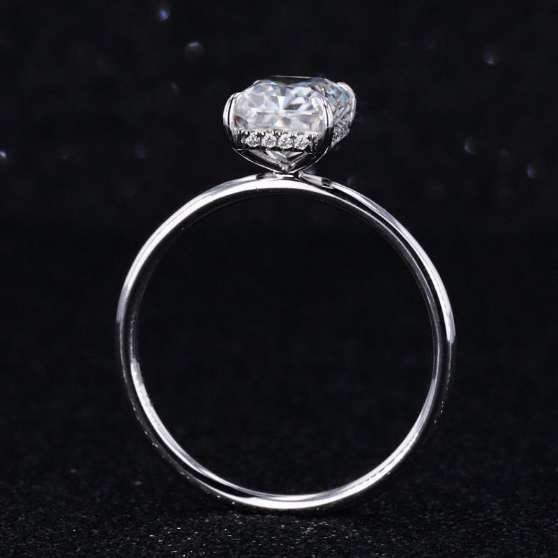 The default design option features 10x8mm Radiant Cut Moissanite stone,  D-Colorless, VVS1-Clarity, VG-Cut, Ex-Polish, VG-Symmetry