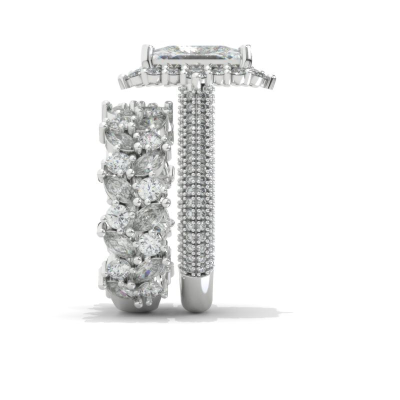 The default design option features 10x8mm Emerald Cut Natural Rutilated Quartz Stone,VVS1-Clarity, VG-Cut, Ex-Polish, VG-Symmetry