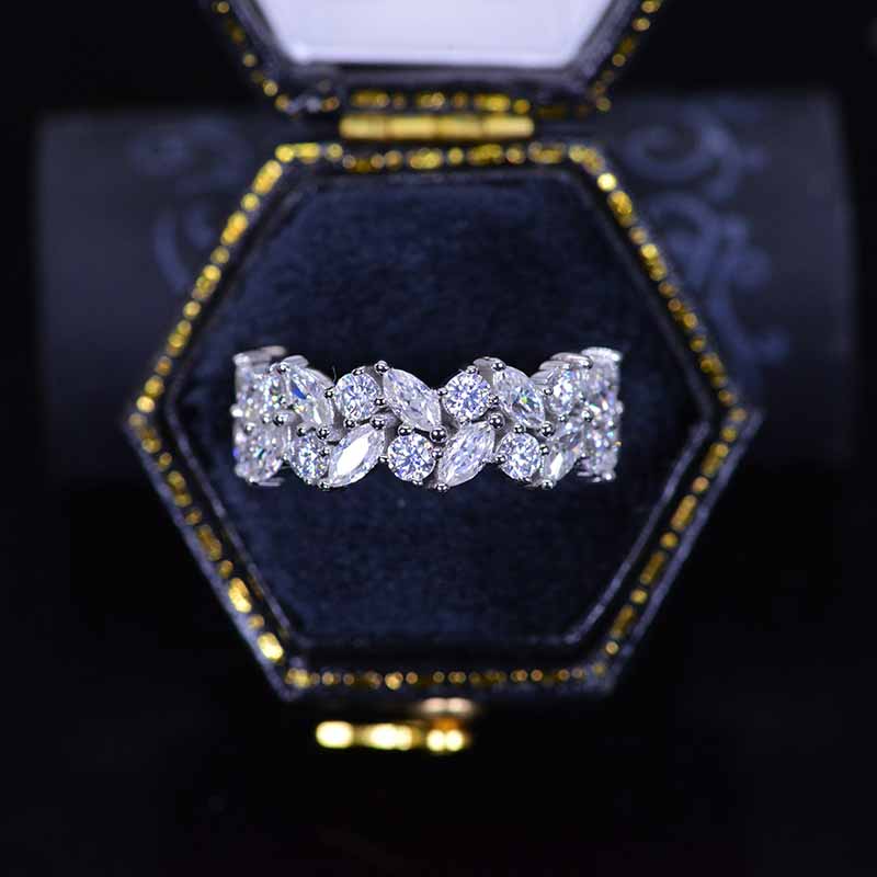 Eternity Band - Model 157 Side Stones: Moissanite Color: D Clarity: VS2-Si1. Cut: Excellent. Cut: Marquise The total approximate weight of side stones: 0.7CTW