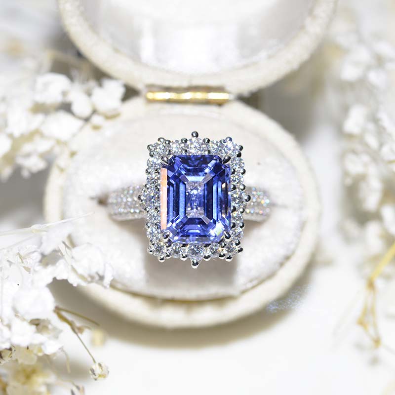 4Ct Purple Sapphire Engagement Ring Halo Emerald Cut Purple Sapphire E - Giliarto