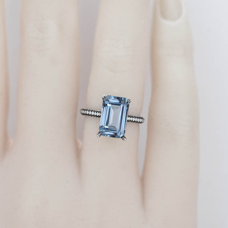 4ct Radiant Cut Genuine Natural Aquamarine Black Gold/Platinum Engagement Ring Set