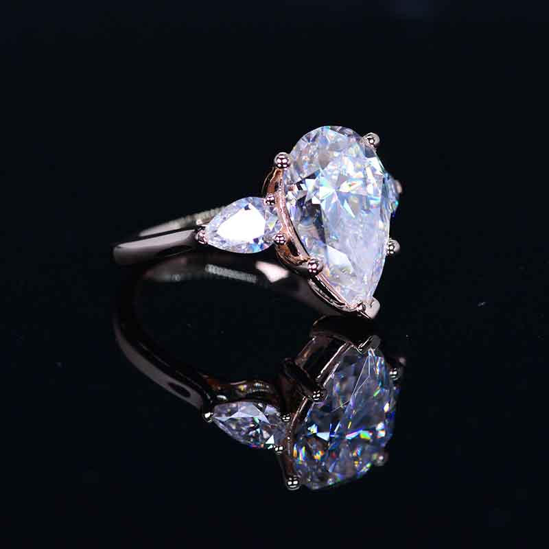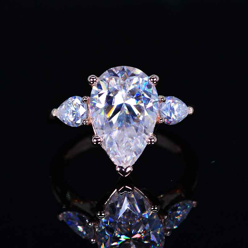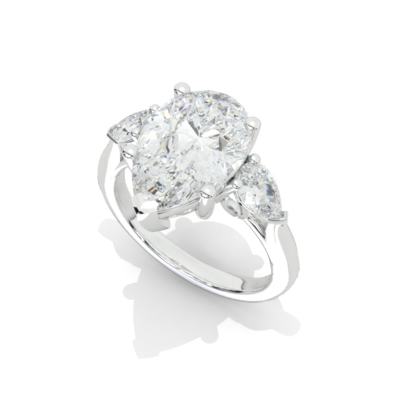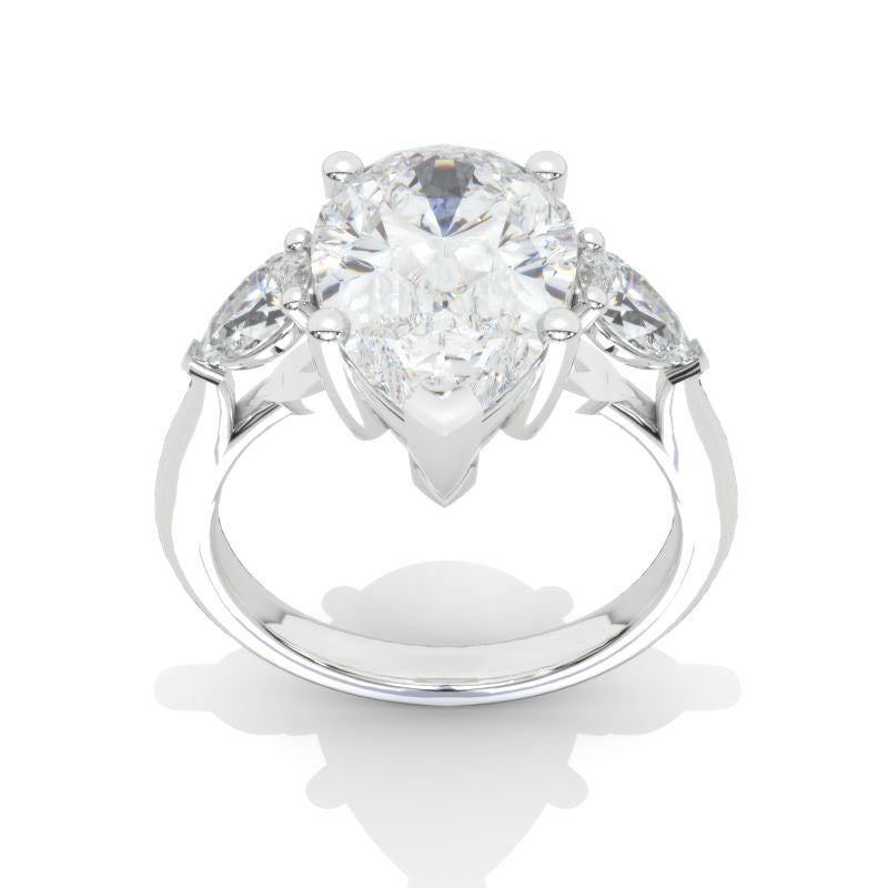 The default design option features 5,5 Carat 14x9mm Pear Cut GiliartoĀ MoissaniteĀ Center StoneĀ D-Colorless, VVS1-Clarity, VG-Cut, Ex-Polish, VG-Symmetry