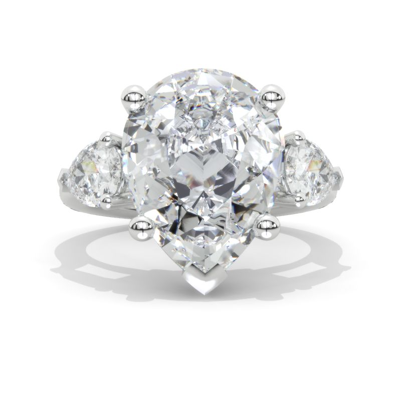 The default design option features 12x9mm Pear Cut Giliarto MoissaniteĀ Center StoneĀ D-ColorlessĀ VVS1-Clarity, VG-Cut, Ex-Polish, VG-Symmetry