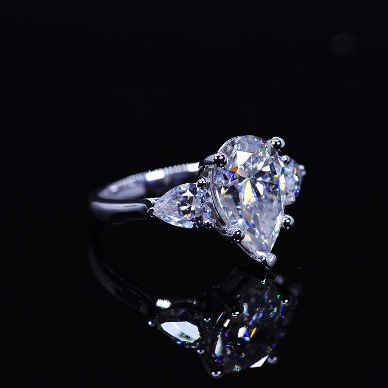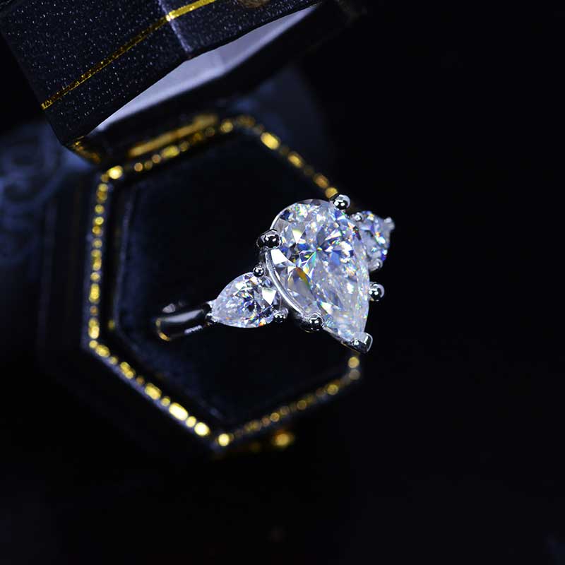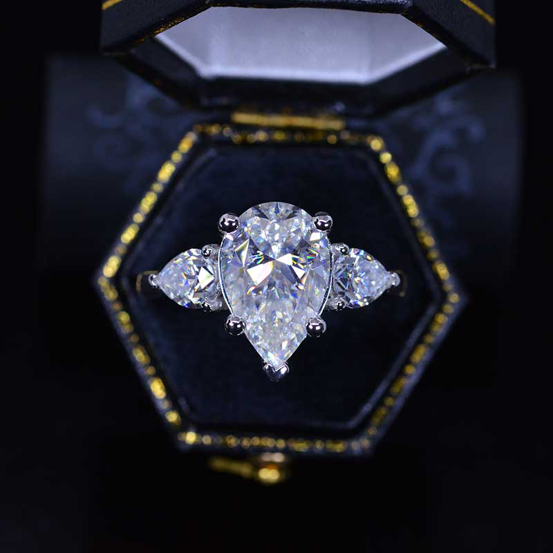 5.5 Pear Cut Tri-Stone Giliarto Moissanite White Gold Engagement Ring