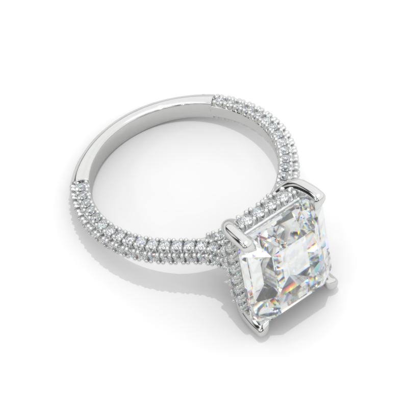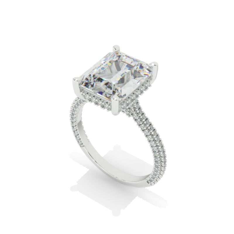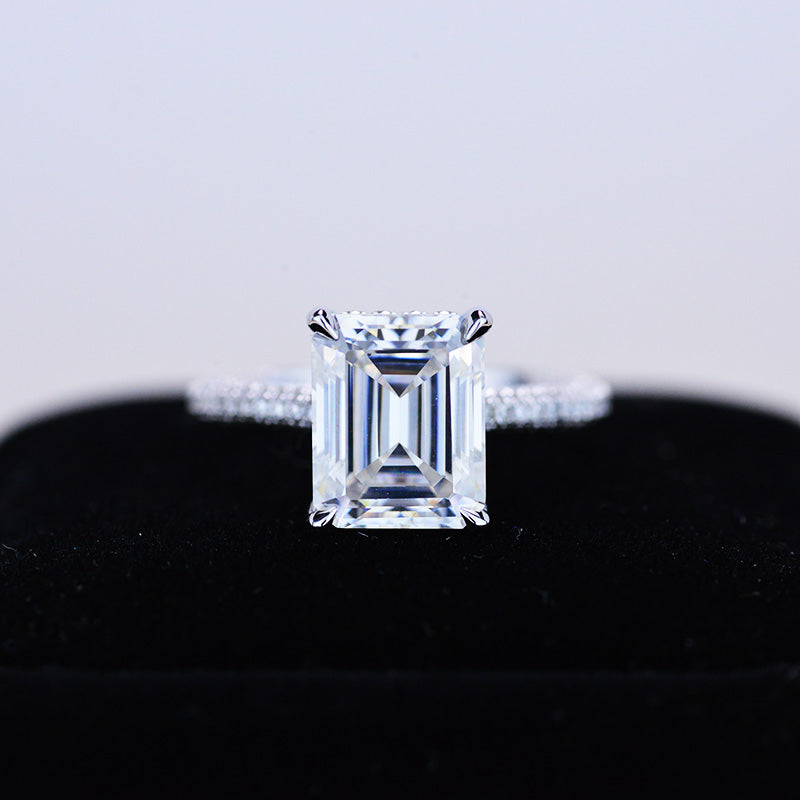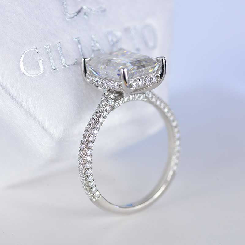 3 Carat Giliarto Emerald Cut Moissanite Hidden Halo Engagement Ring