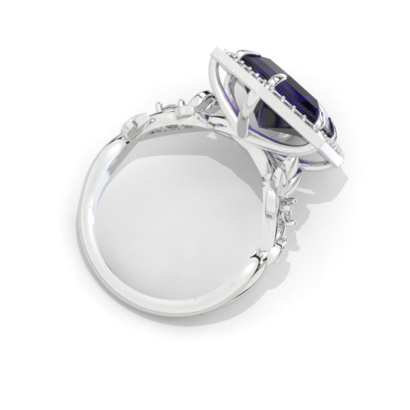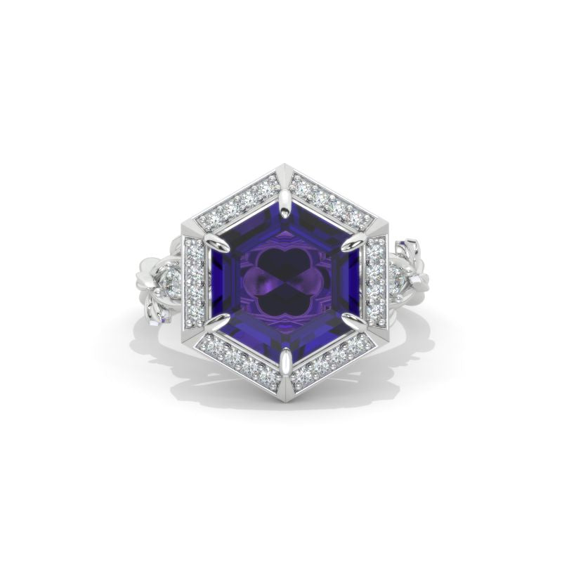 5 Carat Hexagon Alexandrite Floral Twig 14K White Gold Engagement Ring - Giliarto